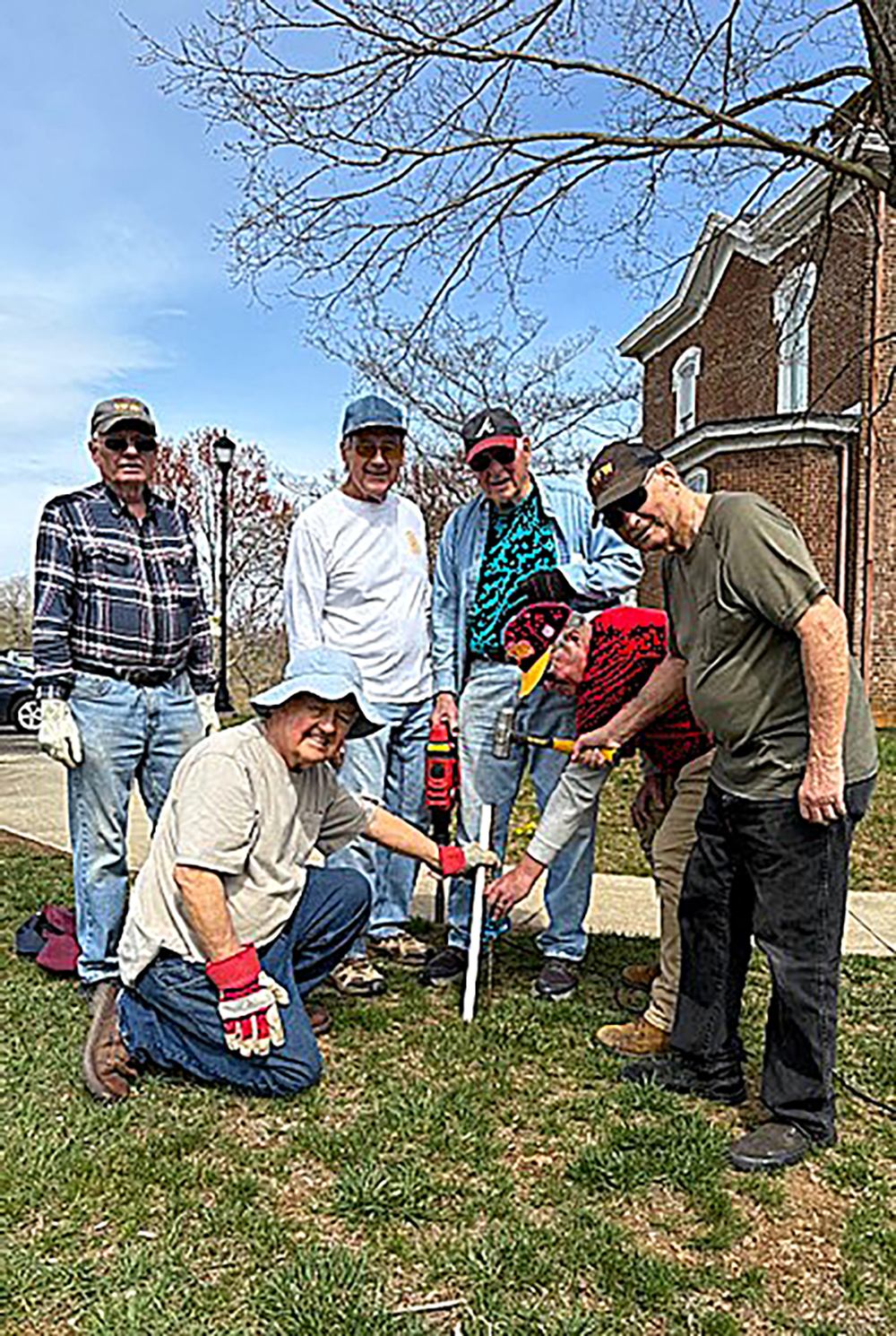 Members of the Rotary Noon Rotary Club and VFW Post 776 work on installing metals rods into the ground in preparation for the Field of Honor display. Pictured: (front from left) Jessee Ring, Dana Jackson and Gary Harris and (back from left) Howard Weddle, Frank Herzog and John Nemeth.